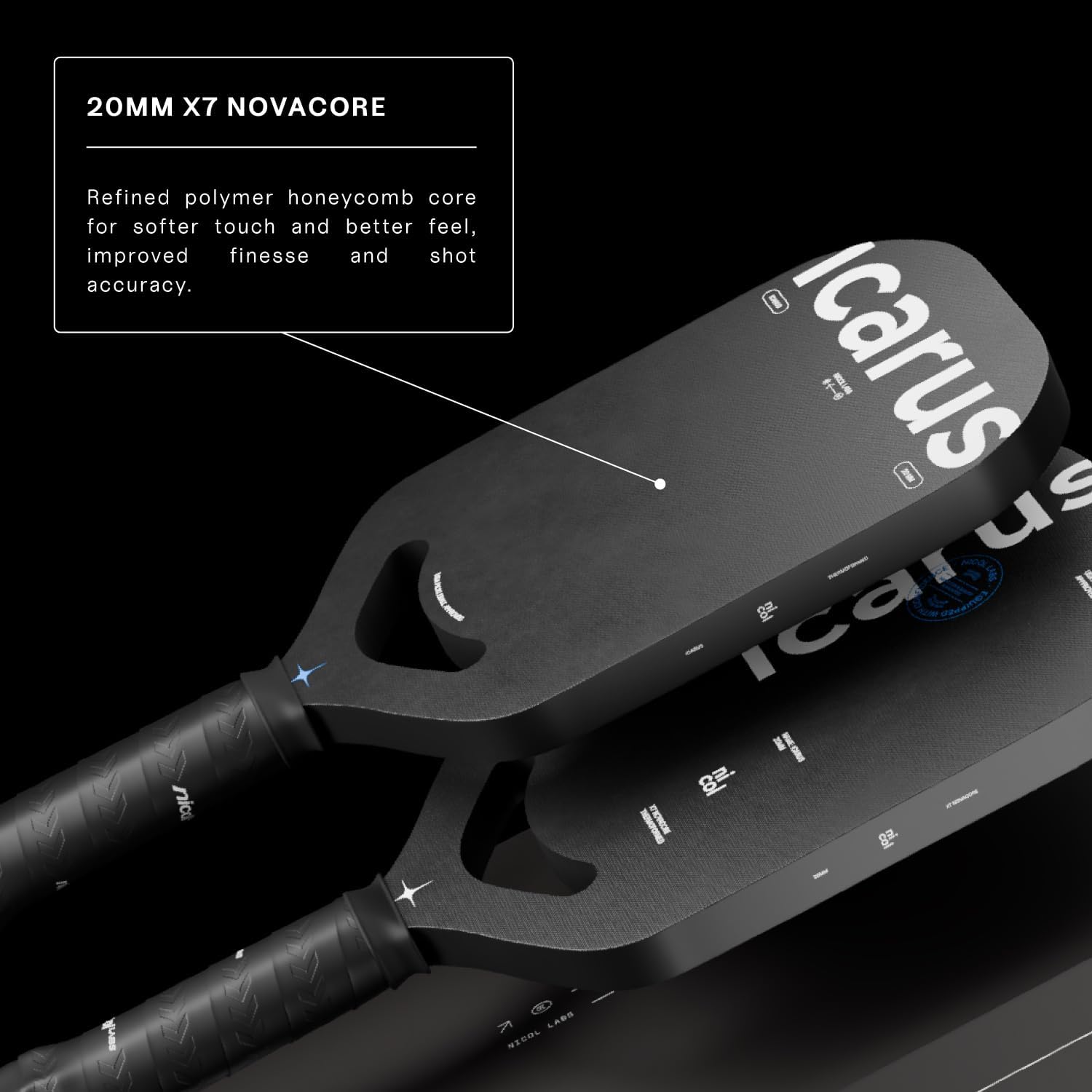 Our thickest core yet for the player who values finesse and touch. A step up in precision and control to place fast dipping shots exactly where you want them. An advanced paddle for the skillful surgeon on the court. Beautifully edgeless reducing chances of mishits due to contact with paddle frame. Elongated paddle face for increased reach.