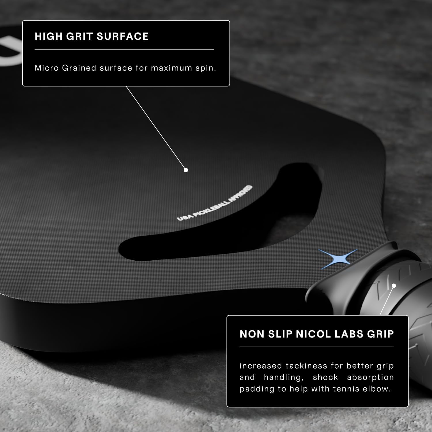 High-grit, and micrograined surface, designed to enhance gameplay by providing increased spin and control. This advanced surface texture allows players to grip the ball better during shots, resulting in more precise and effective strokes.
